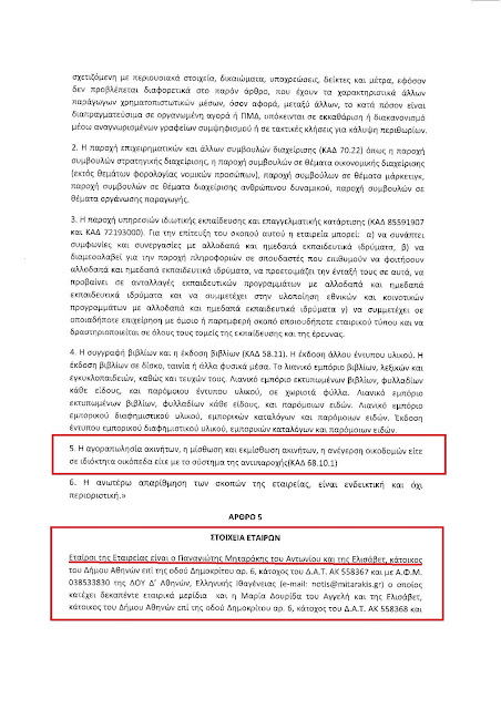 ΕΝΑ ΧΡΟΝΟ ΜΕΤΑ ΚΑΙ ΠΙΟ ΣΥΓΚΕΚΡΙΜΕΝΑ ΣΤΙΣ 30/06/2016 ΓΙΝΕΤΑΙ ΤΡΟΠΟΠΟΙΗΣΗ ΤΟΥ ΚΑΤΑΣΤΑΤΙΚΟΥ ΤΗΣ ΕΤΑΙΡΕΙΑΣ ΟΠΟΥ ΣΥΜΜΕΤΕΧΟΥΝ ΣΤΟ ΜΕΤΟΧΙΚΟ ΚΕΦΑΛΑΙΟ Ο ΚΥΡΙΟΣ ΜΗΤΑΡΑΚΗΣ ΚΑΙ Η ΣΥΖΗΓΟΣ ΤΟΥ ΜΕ ΔΙΕΥΘΥΝΣΗ ΑΚΡΙΒΩΣ ΤΗΝ ΙΔΙΑ ΜΕ ΑΥΤΗΝ ΠΟΥ ΕΙΧΕ ΔΗΛΩΣΕΙ Ο ΜΠΡΟΣΤΙΝΟΣ ΤΟΥΣ ΚΑΙ ΔΕΝ ΗΤΑΝ ΑΛΛΗ ΑΠΟ ΑΥΤΗ ΤΗΣ ΟΙΚΙΑΣ ΤΟΥΣ..ΜΕ ΑΝΤΙΚΕΙΜΕΝΟ ΕΡΓΑΣΙΩΝ ΑΥΤΟ ΠΟΥ ΞΕΡΕΙ ΚΑΛΑ ΝΑ ΚΑΝΕΙ ΤΟ ΠΑΙΔΙ ΤΟΥ FIDELITY FUND ΝΑ ΑΓΟΡΑΣΕΙ ΑΚΙΝΗΤΑ ΚΑΙ ΕΠΕΝΔΥΤΙΚΕΣ ΕΥΚΑΙΡΙΕΣ