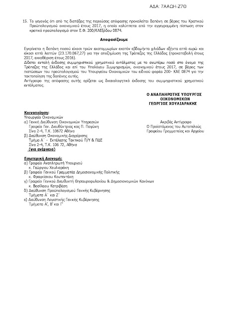 Δείτε λοιπόν πως ο αναπληρωτής υπουργός οικονομικών κύριος χουλιαράκης ενέκρινε δαπάνη ύψους 23,1 εκατομμυρίων ευρώ έναντι της τραπέζης της Ελλάδος για οφειλές προς αυτήν από το 2007 και κατόπιν αναγγελίας της απαίτησης που απορρέει από το γεγονός πως όλοι οι λογαριασμοί του δημοσίου κινούνται μέσα από την ΤτΕ και αυτή θα εισπράττει προμήθειες για αυτό σύμφωνα με το ΦΕΚ..