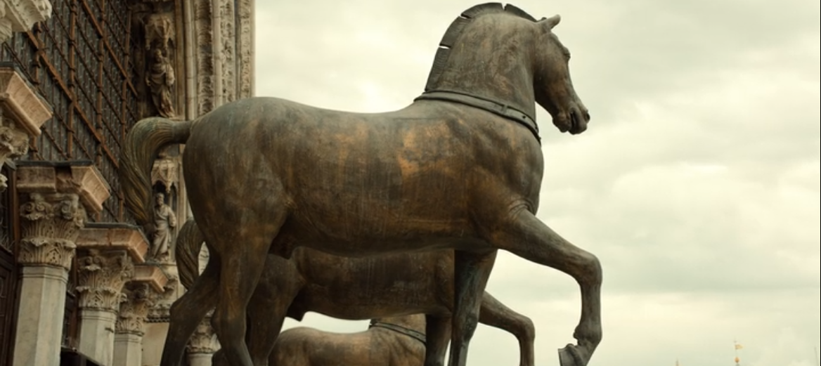 Τα μεγαλοπρεπή Άλογα του Αγίου Μάρκου, γνωστά και ως «Τέθριππο του Θριάμβου», είναι ένα σύνολο τεσσάρων μπρούτζινων γλυπτών αλόγων, τα αντίγραφα των οποίων δεσπόζουν επάνω από τα προπύλαια της Βασιλικής του Αγίου Μάρκου στην Βενετία, καθώς τα πρωτότυπα βρίσκονται στο μουσείο της Βασιλικής. για «λόγους συντήρησης»…