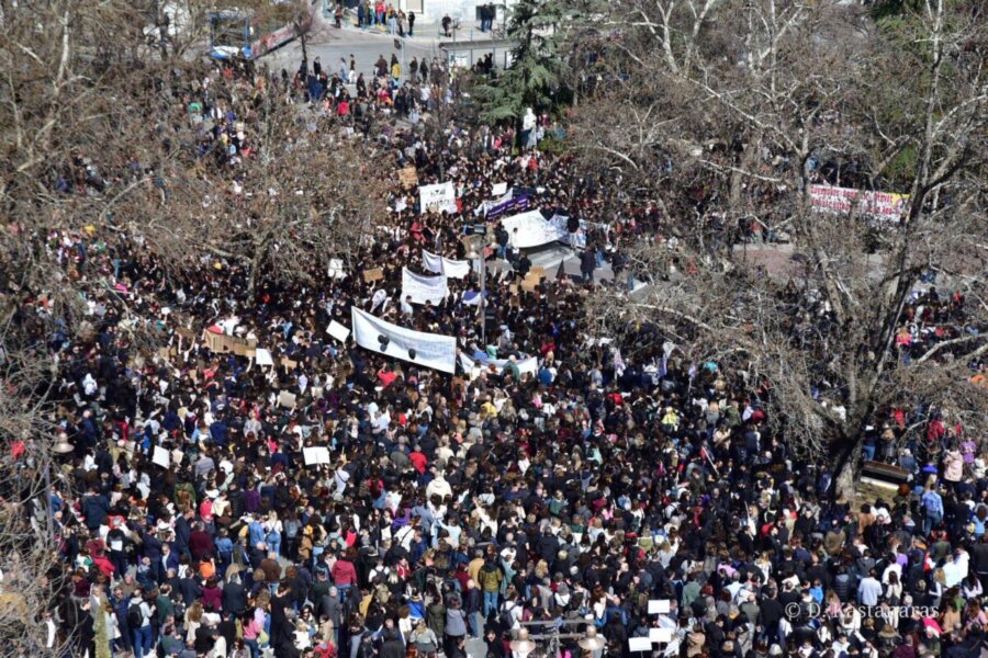 Την ίδια ώρα μεγάλη συγκέντρωση σε όγκο και αριθμό, πρωτοφανής για τα δεδομένα της πόλης, με τη συμμετοχή μαθητών από τα σχολεία της Λάρισας, νέων παιδιών, αλλά και εργαζομένων, πραγματοποιείται στη κεντρική Πλατεία της Λάρισας, στο πλαίσιο της σημερινής απεργίας.