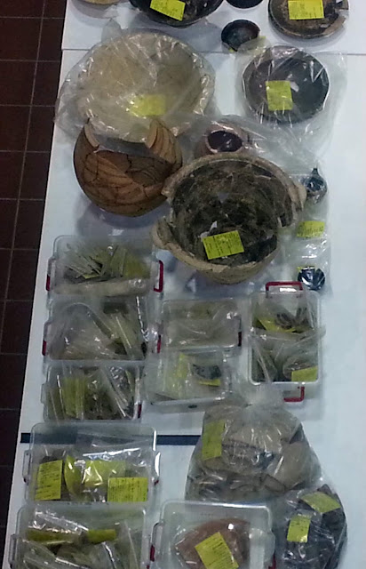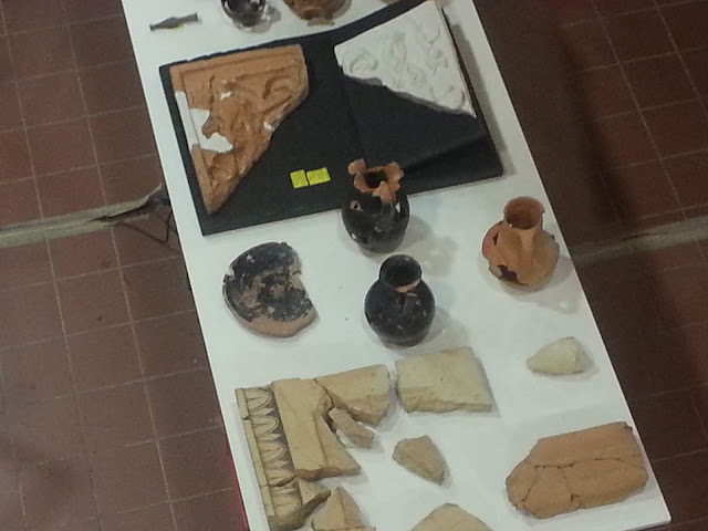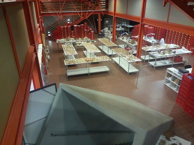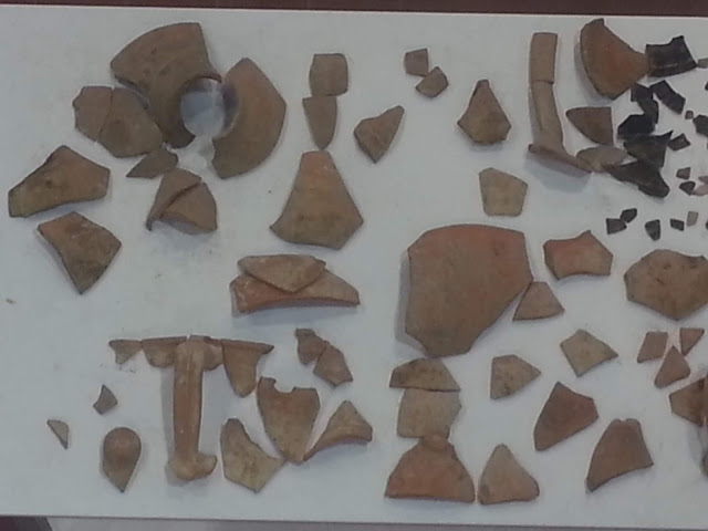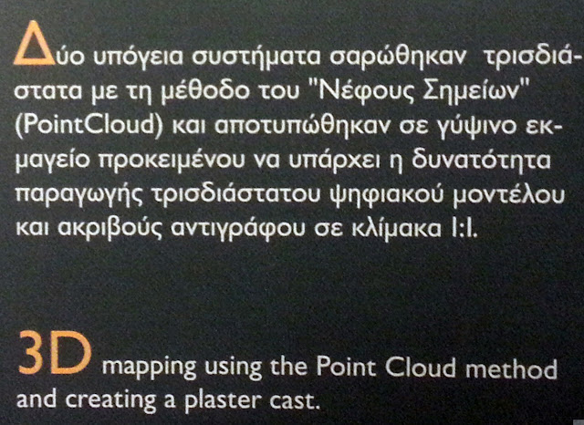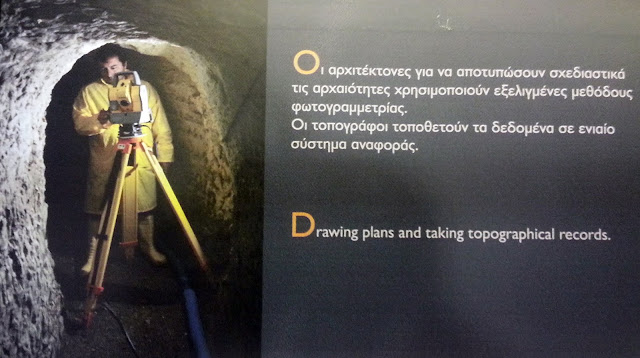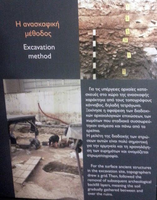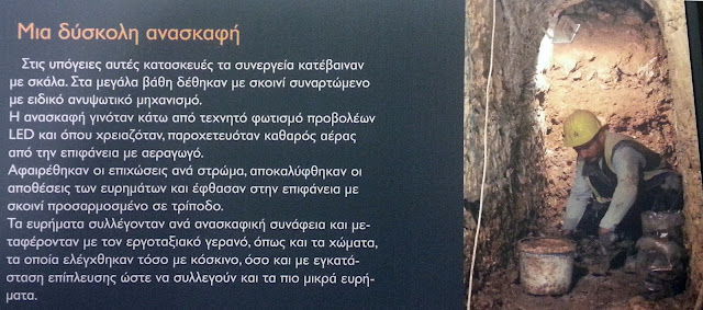 Ο χώρος των εργαστηρίων και της εκθέσεως ήταν… άδειος στις 7 μμ. Τι διάολο; Λάθος έκανα την ώρα; σκέφτηκα. Είχα όμως την άνεσή μου να φωτογραφήσω τις πινακίδες της εκθέσεως, με την ιστορία της ανασκαφικής έρευνας, με κείμενα που είναι γραμμένα για μαθητές Δημοτικού…