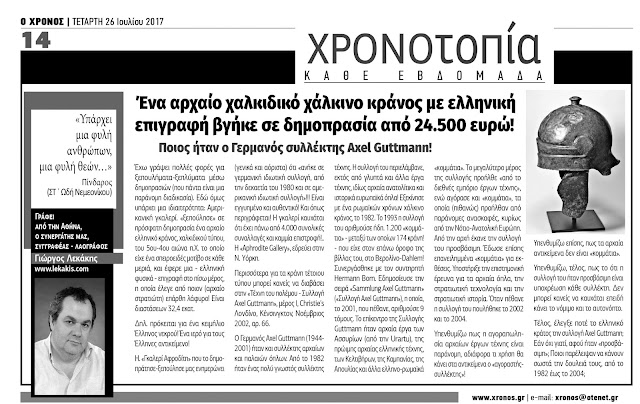 Κι άλλο αρχαίο ελληνικό (χαλκιδικό) χάλκινο κράνος και μάλιστα με ελληνική επιγραφή βγήκε σε δημοπρασία, από… 24.500 ευρώ!