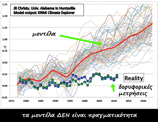 Τα περί “97% των επιστημόνων συμφωνούν” είναι τόσο μούφα που μόνο ένας παπαγάλος το λέει όταν είναι σίγουρος ότι δεν θα έχει αντίλογο. Η καταστροφολογία βασίζεται σε μοντέλα. Τα μοντέλα είναι επιεικώς garbage in – garbage out σε χαωτικά συστήματα όπως το Κλίμα.