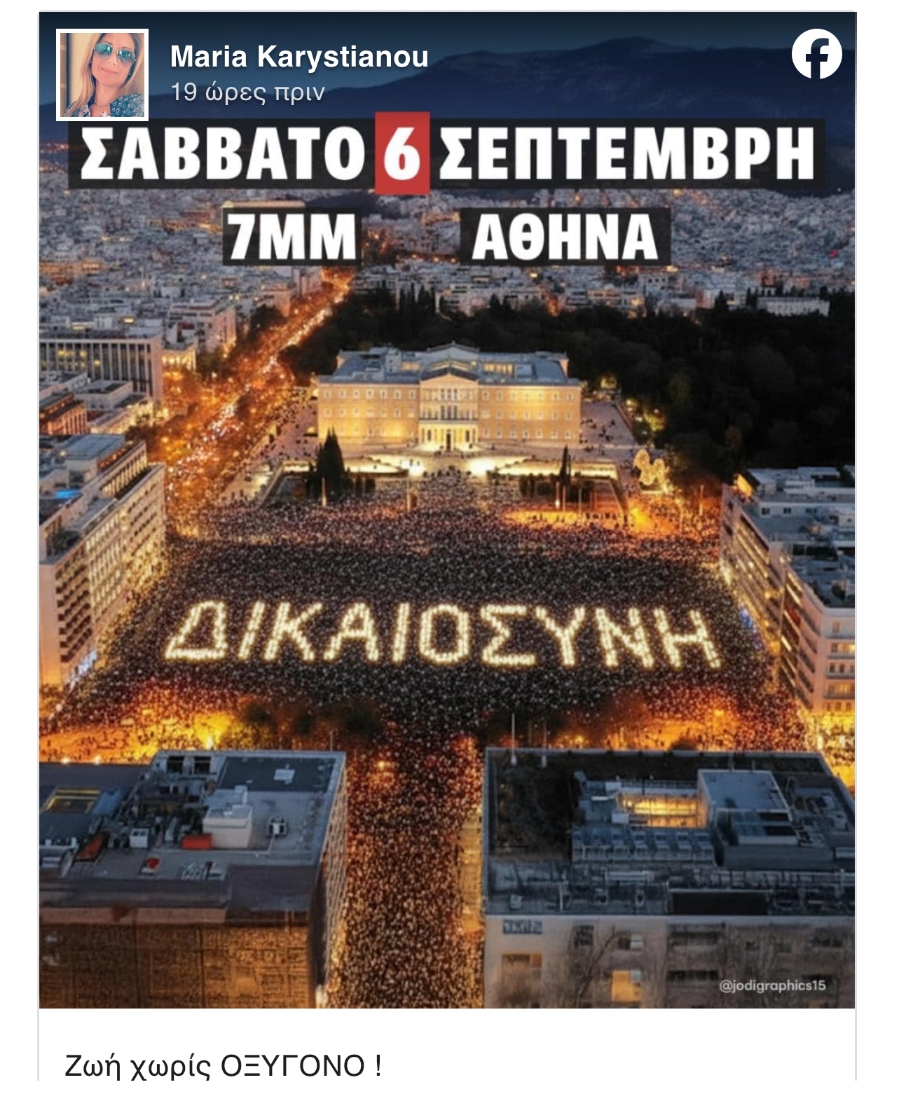 — «6 Σεπτεμβρίου κατεβαίνουμε στις πλατείες! Σε όλη την Ελλάδα! Όπου χτυπά ελληνική καρδιά»
