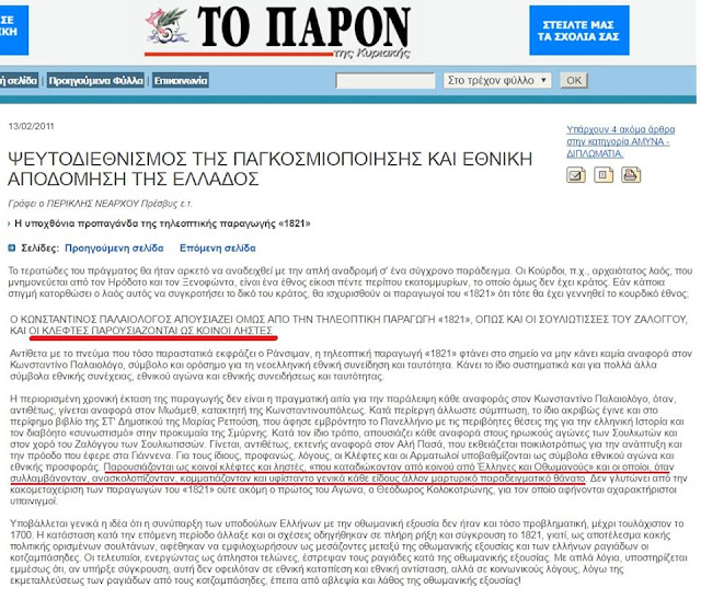 Κατά καιρούς ακούστηκαν πολλά αιρετικά σχετικά με την επανάσταση του 1821, αλλά και με το Μακεδονικό. Ακούσαμε ότι οι πρωταγωνιστές της Ελληνικής Επανάστασης ήταν κανονικοί κλέφτες κι Αλβανοί στην καταγωγή κι ο Διονύσιος Σολωμός ήταν Εβραίος κι όχι Έλληνας. Τέλος ακούσαμε, ότι οι Μακεδονομάχοι ήταν κάτι σαν τους τζιχαντιστές.