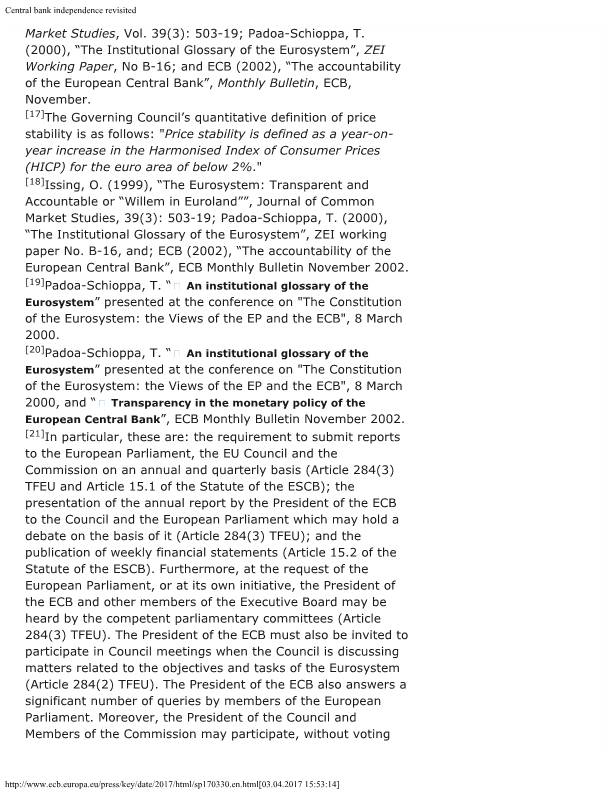 ΣΕ ΟΜΙΛΙΑ ΤΟΥ ΤΟ ΜΕΛΟΣ ΤΟΥ ΕΚΤΕΛΕΣΤΙΚΟΥ ΣΥΜΒΟΥΛΙΟΥ ΤΗΣ ΕΚΤ ΚΥΡΙΟΣ MERSCH ΠΡΟΣ ΤΑ ΜΕΛΗ ΤΗΣ BIS ΤΟΥ ΑΝΩΤΑΤΟΥ ΟΡΓΑΝΟΥ ΤΩΝ ΚΕΝΤΡΙΚΩΝ ΤΡΑΠΕΖΩΝ ΜΙΛΗΣΕ ΓΙΑ ΤΗΝ ΕΠΙΤΑΚΤΙΚΗ ΑΝΑΓΚΗ ΠΛΗΡΟΥΣ ΑΝΕΞΑΡΤΗΣΙΑΣ ΤΩΝ ΚΕΝΤΡΙΚΩΝ ΤΡΑΠΕΖΩΝ ΠΡΟΚΕΙΜΕΝΟΥ ΝΑ ΕΠΙΤΥΧΟΥΝ ΤΟΥΣ ΣΤΟΧΟΥΣ ΤΗΣ ΑΣΚΗΣΗΣ ΝΟΜΙΣΜΑΤΙΚΗΣ ΠΟΛΙΤΙΚΗΣ.