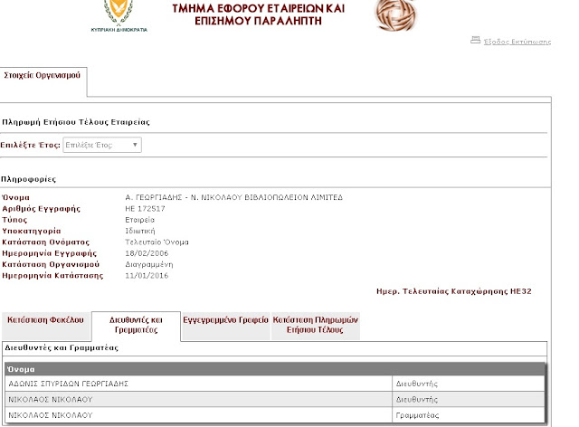 Άλλωστε ο αρμόδιος φορέας της Κυπριακής κυβέρνησης μας το λέει ξεκάθαρα το όνομα σας τον συνέταιρο σας και την διεύθυνση της εταιρείας σας..