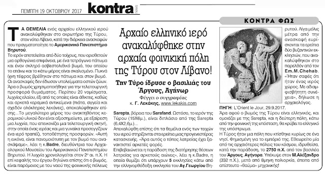 Αρχαίο ελληνικό ιερό ανακαλύφθηκε στην αρχαία φοινικική πόλη της Τύρου στον Λίβανο – Η Τύρος ιδρύθηκε από τον βασιλιά του Άργους, Αγήνορα.