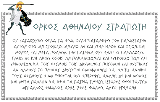Εμείς έχομεν ανέκαθεν ως σύνθημα τον όρκο των εφήβων των Αθηνών. Τα παλικάρια της αρχαίας Ελλάδος επάνω από την Ακρόπολη ορκίζονταν και λέγανε, «Ή μόνος ή μετ’ άλλων τα όσια και ιερά υπερασπιώ».