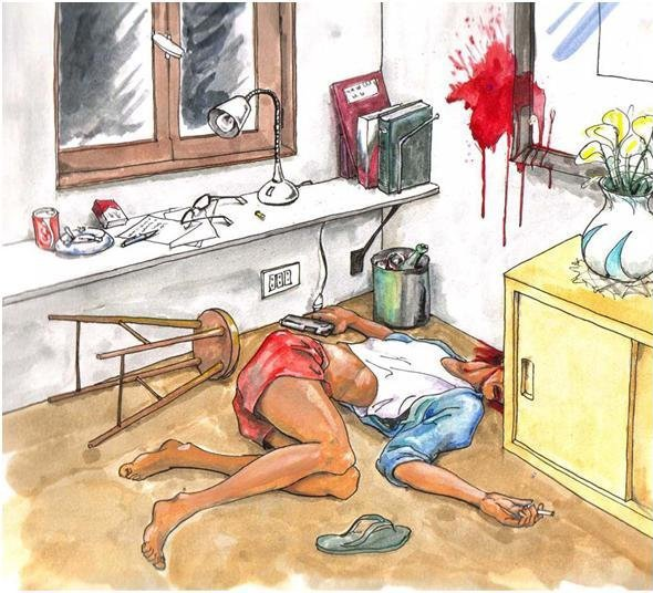 Οι λεπτομερείς της φωτογραφίες μπερδεύουν και πολλοί χρήστες λένε ότι πρόκειται για δολοφονία ενώ άλλοι για αυτοκτονία. Τα στοιχεία που έχει αυτή η σκηνή είναι πολλά και διχάζουν.