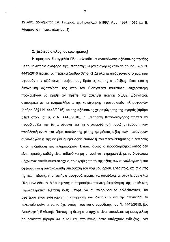 Η επιτροπή κεφαλαιαγοράς ζήτησε γνωμοδότηση από τον Αρειο πάγο σχετικά με το θέμα της εσωτερικής πληροφόρησης..