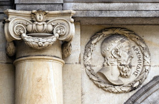 | Ο Αρχιμήδης, σε ανάγλυφη εικόνα, στην πρόσοψη του σχολείου! |