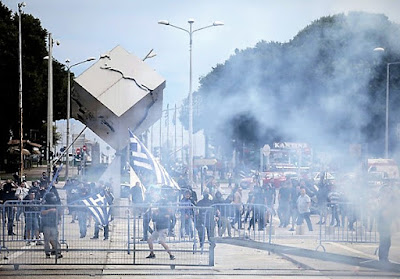 Θα ήταν αστείο, αν δεν αφορούσε το ξεπούλημα της Μακεδονίας: τους βλέπεις έντρομους στα κανάλια να καταδικάζουν τις επιθέσεις με πέτρες, λες και είναι το μεγαλύτερο έγκλημα, λες και τόσα χρόνια οι εκάστοτε κρατούντες δεν επέβαλλαν στον ελληνικό λαό να ανέχεται και δέχεται ως φυσιολογικό γεγονός όχι μόνο τη ρίψη πετρών από διαδηλωτές αλλά τη ρίψη μολότωφ, το κάψιμο της ελληνικής σημαίας, την καταστροφή περιουσιών, τους εμπρησμούς και τις δολοφονίες.