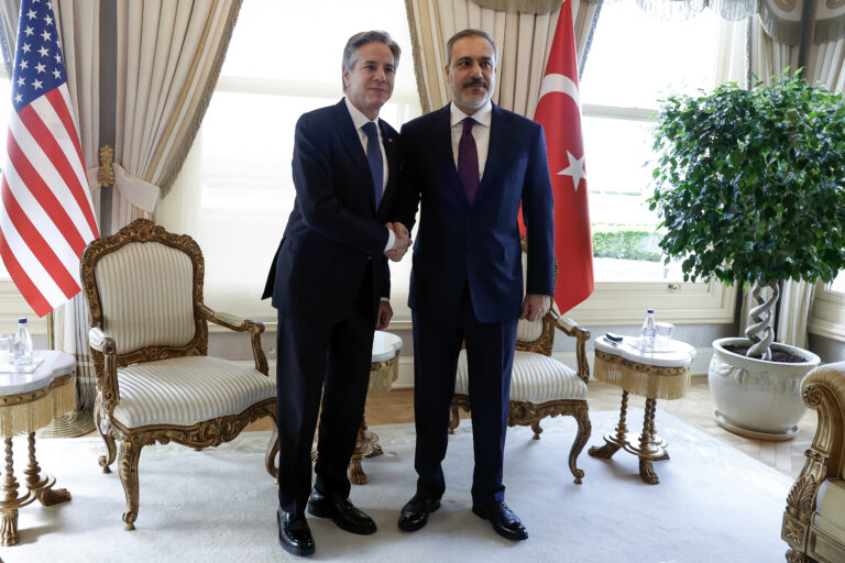 Περίπου δύο ώρες διήρκεσε η συνάντηση του Αμερικανού υπουργού Εξωτερικών, Άντονι Μπλίνκεν, με τον Τούρκο ομόλογό του Χακάν Φιντάν στην Κωνσταντινούπολη. Στη συνέχεια αναμένεται να συναντήσει τον Τούρκο πρόεδρο Ρετζέπ Ταγίπ Ερντογάν προτού αναχωρήσει το απόγευμα για την Κρήτη, όπου θα γίνει δεκτός από τον πρωθυπουργό Κυριάκο Μητσοτάκη.