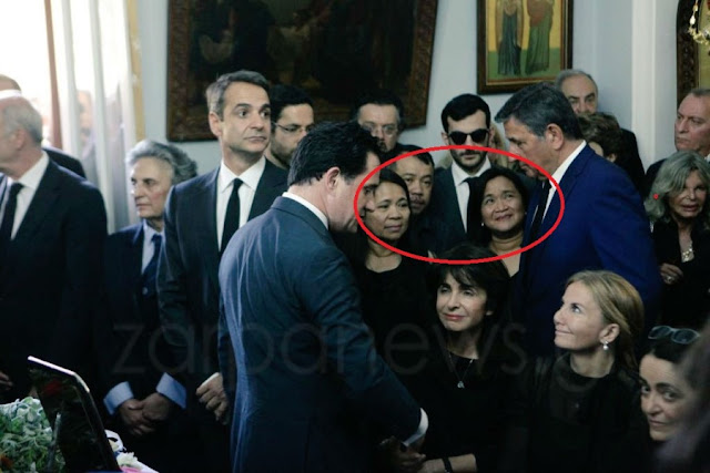 Οι Φιλιππινέζοι οικιακοί βοηθοί, βρέθηκαν και αυτοί μαζί με την οικογένεια σε όλη τη διάρκεια της τελετής και στο νεκροταφείο στον Αργουλιδέ. Μάλιστα, δεν πρόκειται μόνο για τους 2 εικονιζόμενους Φιλιππινέζους οι οποίοι είναι και οι παλαιότεροι εργαζόμενοι της οικογένειας. Στην ταφή παρευρέθηκαν τα παιδιά και τα εγγόνια τους, που μεγάλωναν στο ίδιο σπίτι με την οικογένεια Μητσοτάκη.