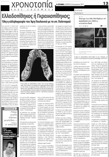 ΔΙΑΒΑΣΤΕ το άρθρο για την κατάρριψη της αφροκεντρικής θεωρίας, εδώ: