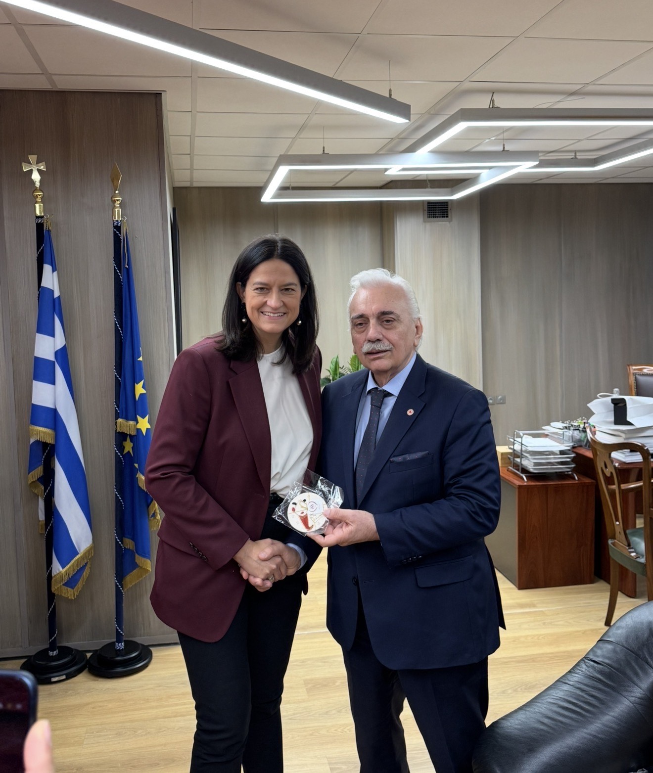 Συγκεκριμένα, μέσα σε άκρως εορταστικό κλίμα, εθελοντές Νεότητας της Ερυθροσταυρικής Ομάδας των Αρσακείων Τοσιτσείων Εκάλης, συνοδευόμενοι από βιολί και αρμόνιο, έψαλαν τα χριστουγεννιάτικα κάλαντα στην Υπουργό Εργασίας και Κοινωνικής Ασφάλισης, κα Νίκη Κεραμέως , παρουσία του Προέδρου του Ε.Ε.Σ, Dr. Αντώνιου Αυγερινού , αποστέλλοντας το πιο αισιόδοξο μήνυμα αγάπης και αισιοδοξίας ενόψει των Χριστουγέννων.
