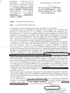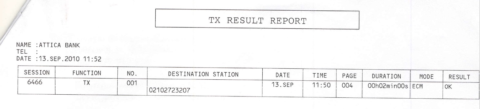 Αφού μεσολάβησε η θερινή (σ.σ. όχι για εμέ) … ραστώνη και τηλεφωνικές επικοινωνίες μαζί με τον αξιωματικό Καπόγλη, αποστέλλω με Fax, από την Attica bank που εργαζόμουν ΑΚΟΜΗ, την 13-9-2010 (δύο μήνες μετά τα … διαμειφθέντα με το Α/Τ Ν. Φιλαδέλφειας το κάτωθι :
