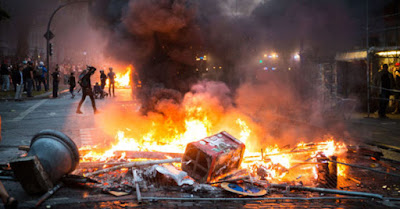 Ένας νεαρός λευκός μια μαύρη μάσκα, στην θέα των αστυνομικών άρχισε να πετάει βόμβες μολότοφ με αποτέλεσμα να πιάσει φωτιά ένα περιπολικό. Από εκεί και πέρα, η βία επιταχύνθηκε γρήγορα.