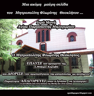Με το υπ’ αριθ. 937/2-8-2017 έγγραφό του (το οποίο επιδόθηκε στον π. Ιγνάτιο από δικαστική επιμελήτρια στις 4-8-2017), ο Μητροπολίτης Φλωρίνης – ο οποίος απαρνήθηκε την Ορθοδοξία και προσχώρησε την Παναίρεση του Οικουμενισμού ή Θρησκευτικού Συγκρητισμού ή Γνωστικισμού, η οποία εισήχθη ψευδο-συνοδικά από την Ψευδο-σύνοδο της Κρήτης –