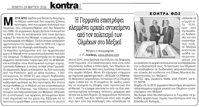 Αρχική Πολιτισμός Η Γερμανία επιστρέφει κλεμμένα αρχαία αντικείμενα από τον πολιτισμό των Ολμέκων στο...