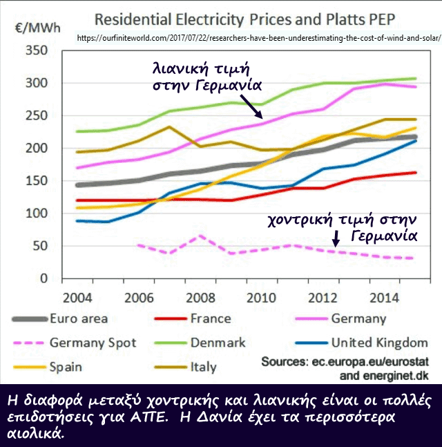 Και ότι κάθε ανάλυση δεν αρκεί να εξετάζει το κόστος της εγχεόμενης ενέργειας, αλλά πρέπει να βλέπει το συνολικό κόστος της ενέργειας που ικανοποιεί τα κριτήρια ενός δικτύου. Και, φυσικά, να μην μπερδεύει την χοντρική τιμή του ρεύματος (που πληρώνονται οι ηλεκτροπαραγωγοί) με την λιανική τιμή που πληρώνουν οι καταναλωτές.