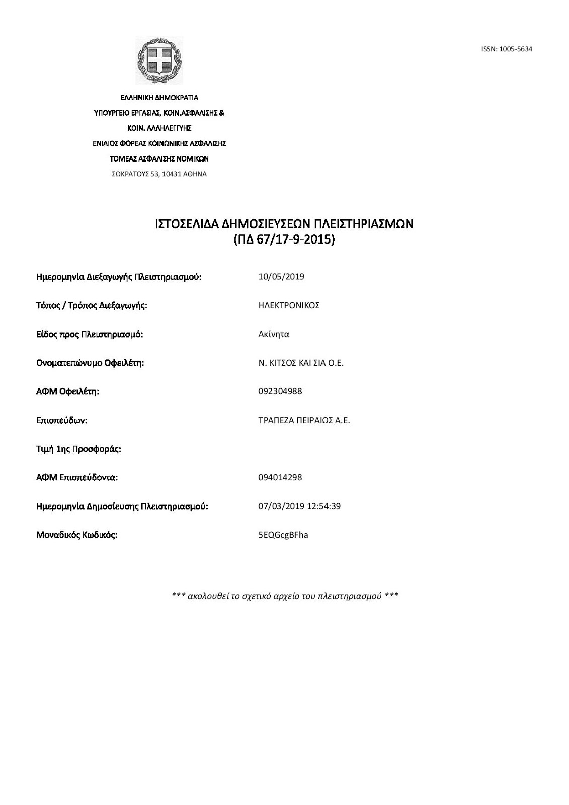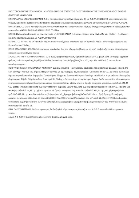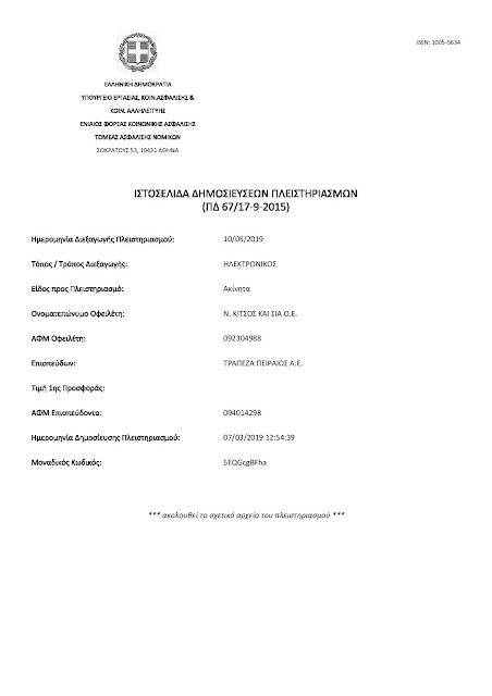 Ακόμη μια περίπτωση δανειολήπτριας όπου χάνει την περιουσία της σε πλειστηριασμό λόγω του γεγονότος ότι προσπάθησε να αποπληρώσει το δάνειο της από τα ομόλογα του Σώρρα τα οποία περιήλθαν στην κατοχή του από την πώληση διαστημικής τεχνολογίας στο Αμερικανό πρόεδρο Ομπάμα. Πρόκειται για την περίπτωση της εκπροσώπου τύπου της Ελλήνων Συνέλευσις κυρίας Ελένης Κίτσου η οποία όπως θα δείτε παρακάτω από την επίσημη σελίδα των ηλεκτρονικών πλειστηριασμών η τράπεζα Πειραιώς προέβει σε πλειστηριασμό κατά της εταιρείας ιδιοκτησίας της οικογενείας της εν λόγω κυρίας.. Δείτε και το σχετικό έγγραφο.