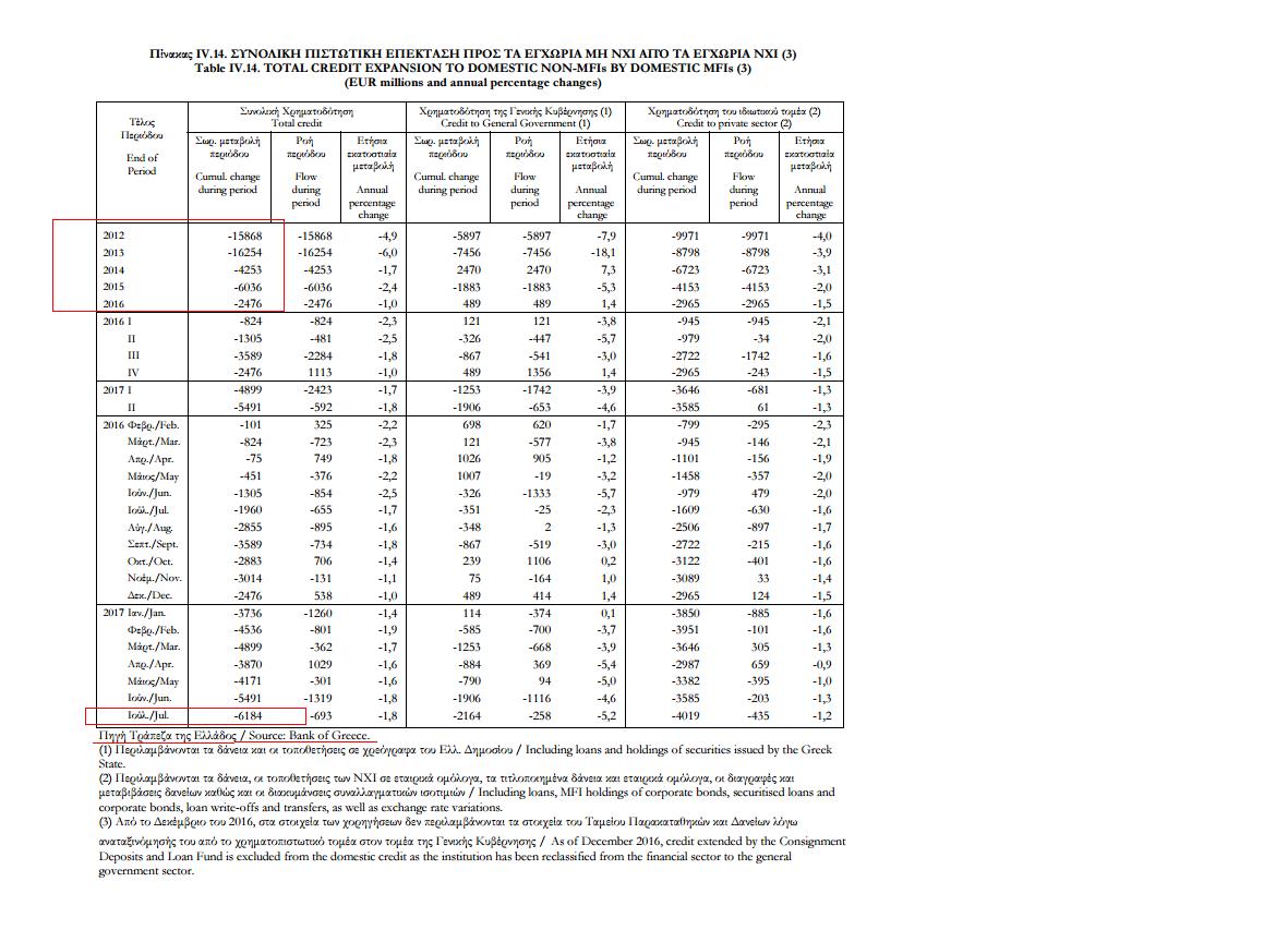 Σήμερα η τράπεζα της Ελλάδος δημοσίευσε την 200σελιδη έκθεση οικονομικής συγκυρίας της Ελληνικής οικονομίας όπου στα νομισματικά μεγέθη αποκαλύπτει το μέγεθος του Εγκλήματος που κάνουν οι κεντρικές τράπεζες τουλάχιστον από το 2012 έως και σήμερα σύμφωνα πάντα με αυτόν τον πίνακα όπου η συνολική πιστωτική επέκταση του τραπεζικού συστήματος βαίνει μειούμενο κατά 50 δις ένα μέγεθος τεράστιο δεδομένου της οικονομικής συγκυρίας που βιώνει η χώρα.