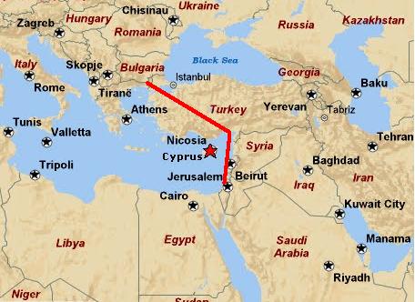 Η μόνη εναλλακτική που απομένει πλέον στην Ευρώπη και στις ΗΠΑ είναι ένας υποθαλάσσιος αγωγός που θα ξεκινάει από το Ισραήλ θα ενώνει την Κύπρο , την Κρήτη, την νότια Ελλάδα και την Ιταλία και θα μεταφέρει το ισραηλινό αέριο, το Αιγυπτιακό, το κυπριακό και το ελληνικό προς την Ευρώπη Ο αγωγός αυτός λέγεται EAST-MED και απεικονίζεται στην εικόνα κάτω