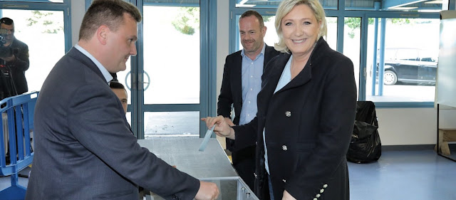 Σύμφωνα με τα πρώτα στοιχεία το κόμμα της προηγείται με 3 έως 5 μονάδες από το κόμμα του Γάλλου προέδρου Εμανουέλ Μακρόν.