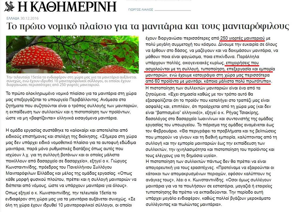 Η Ελλάδα παράγει μανιτάρια κι υπάρχουν 250 γιορτές μανιταριού. Υπάρχουν και εταιρίες που εξάγουν μανιτάρια …κι όλα αυτά χωρίς κανένα νομικό πλαίσιο.