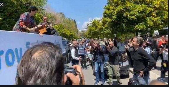 _______ΑΝΤΙΘΕΤΩΣ: Η κακαλλιτέχνις κα Άλκηστις Πρωτοψάλτη ΑΝΕΜΠΟΔΙΣΤΗ περιεφέρετο στην καρότσα ενός μεγάλου φορτηγού και όργωνε τους δρόμους των Αθηνών! Αντί δε να την επιπλήξουν, ο κ. Πρωθυπουργός εξήλθε του Γραφείου του από το Μέγαρο Μαξίμου, βρέθηκε στο πεζοδρόμο της οδού Ηρώδου του Αττικού μαζί με ένα πλήθος κόσμου και άρχισε να καταχειροκροτεί την καλλιτέχνιδα!