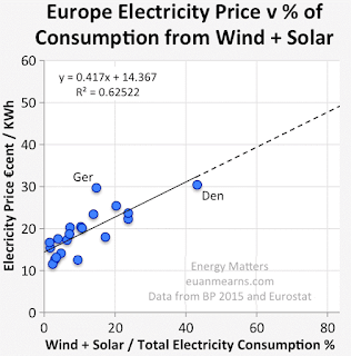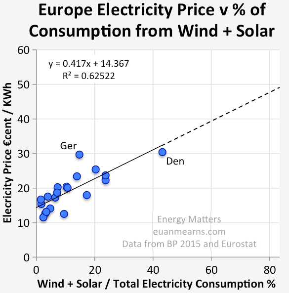 Ο Μήτσος (και μάλλον και ο Γιώργος) δεν καταλαβαίνουν γραφήματα και προφανώς δεν θα καταλάβουν ότι η Δανία και η Γερμανία έχουν το μεγαλύτερο ποσοστό ρεύματος από ΑΠΕ και το ακριβότερο ρεύμα. Ούτε καταλαβαίνουν πώς πέφτει η χοντρική και ανεβαίνει η λιανική. Η λιανική, Μήτσο μ’ και Γιώργο μ’ περιέχει και τις επιδοτήσεις και, Μήτσο μ’ και Γιώργο μ’ όσο βάζεις και εσύ ΑΠΕ τόσο θα σου ακριβαίνει το ρεύμα, μόνο που οι Γερμανοί έχουν συμβατική ηλεκτροδότηση και απασχολούν καμμιά 300αριά χιλιάδες κόσμος εξάγοντας μηχανήματα ΑΠΕ σε σένα. Εσύ απλά παρατείνεις γαλαντονόμες επιδοτήσεις για να …αναπτυχθούν — οι Γερμανοί. Και οι πλασιέ τους.