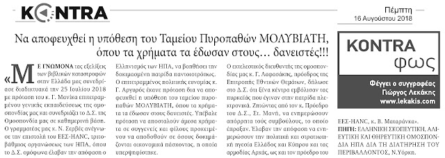 Ταμείου Πυροπαθών ΜΟΛΥΒΙΑΤΗ,