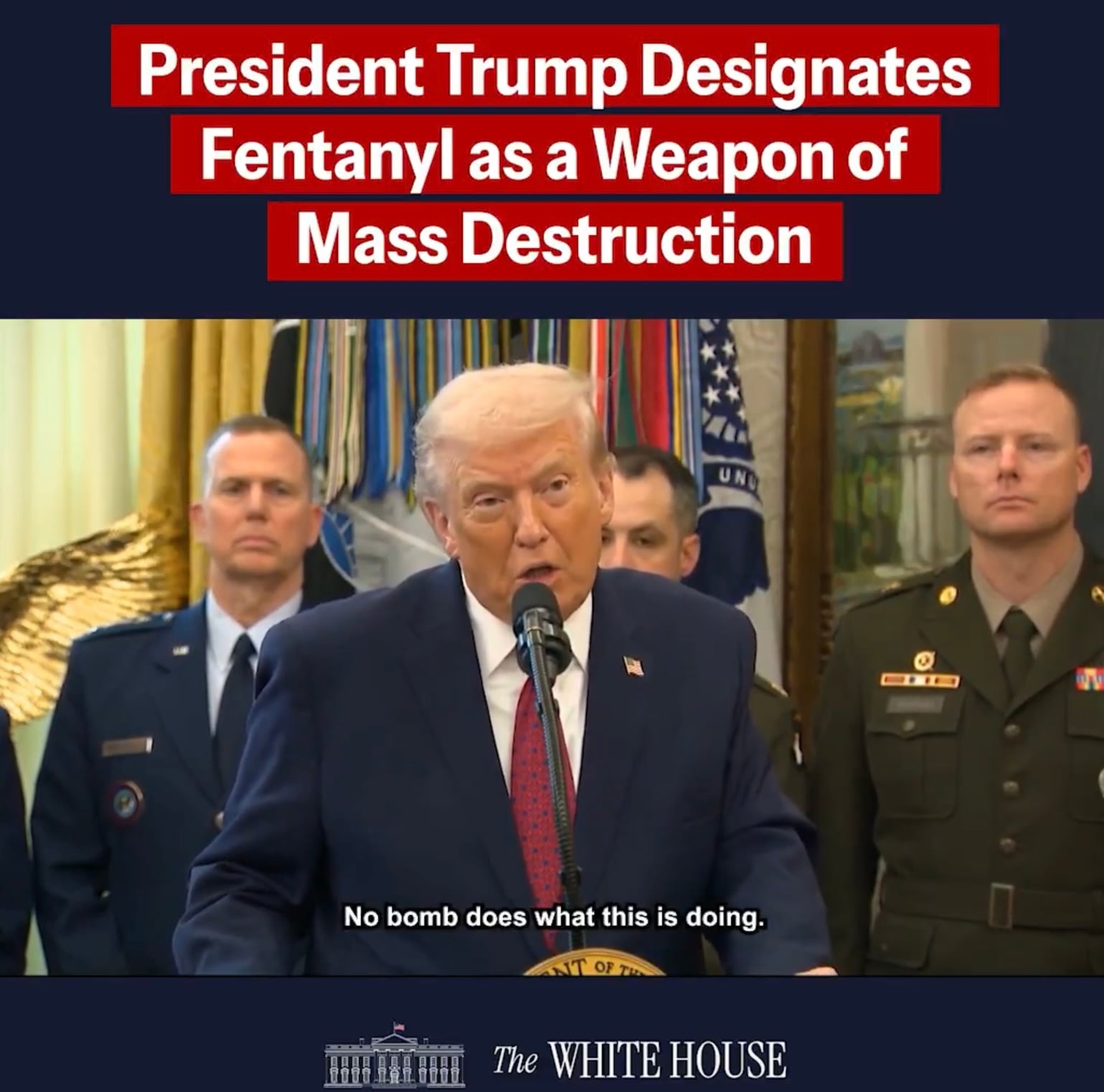 BREAKING: President Trump just declared FENTANYL a WEAPON OF MASS DESTRUCTION.