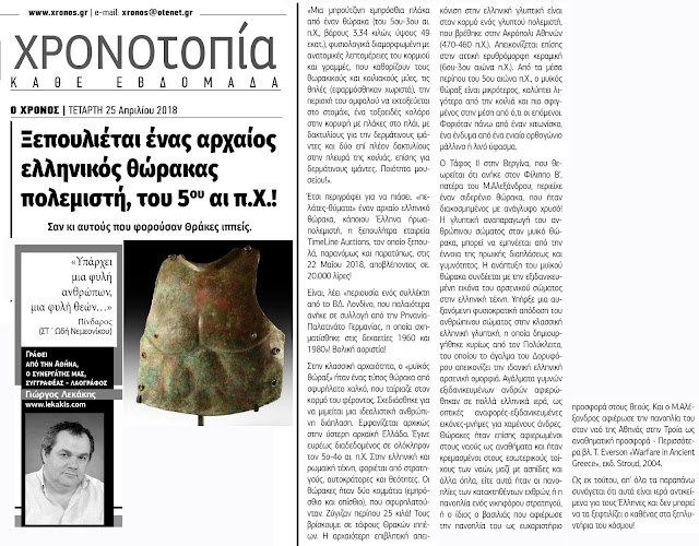 Αρχική Πολιτισμός Ξεπουλιέται ένας αρχαίος ελληνικός θώρακας πολεμιστή, του 5ου αι π.Χ.! Πολιτισμός Ξεπουλιέται ένας αρχαίος ελληνικός θώρακας πολεμιστή, του 5ου αι π.Χ.! 29/04/2018 Facebook Twitter Pinterest WhatsApp Σαν κι αυτούς που φορούσαν Θράκες ιππείς… ΠΗΓΗ ΠΑΡΟΜΟΙΑ ΑΡΘΡΑΠΕΡΙΣΣΟΤΕΡΑ ΑΠΟ ΤΟΝ ΔΗΜΙΟΥΡΓΟ Μαρία Κάλλας: Σαν σήμερα πέθανε η απόλυτη ντίβα της όπερας Άννα Βίσση: «Τραγουδάω 3,5 ώρες αγνή χωρίς ουσίες, κι ας λένε διάφορα από πίσω» Ozzy Osbourne: Η παγκόσμια μουσική κοινότητα αποχαιρετά τον «αρχιερέα» του heavy metal