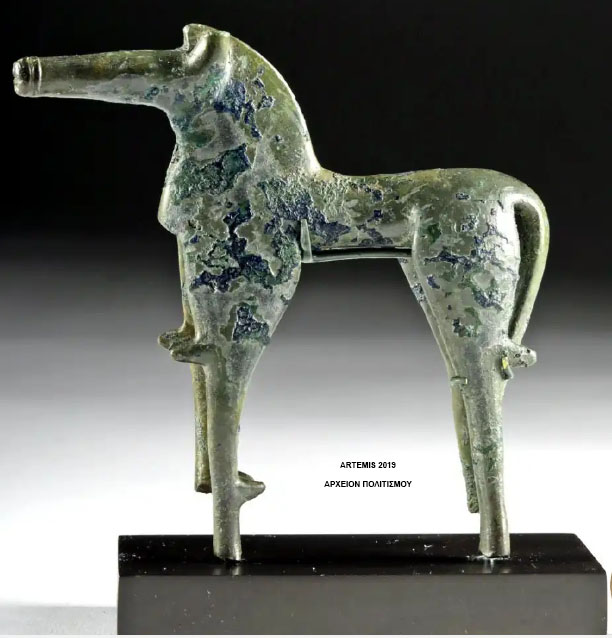 Ένα αρχαίο ελληνικό ειδώλιο αλόγου, λακωνικού τύπου, του 8ου αιώνα π.Χ. ξεπουλιέται στις 21.2.2019 από τον «Οίκο Δημοπρασιών Artemis Gallery» (στο Louisville, των ΗΠΑ), και το ανεκτίμητο… εκτιμάται… 35.000 δολλάρια!