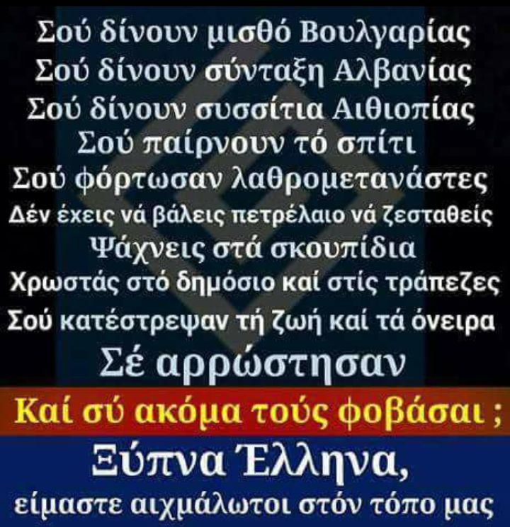 - και μια ανίκανη κυβέρνηση να ασχολείται με τα δικαιώματα των ομοφιλοφύλων και με την απόδοση ιθαγένειας σε λαθρομετανάστες, να τους βρίσκει σπίτια και να τους δίνει δικαίωμα εργασίας και να βάζει τα παιδιά τους στα σχολεία