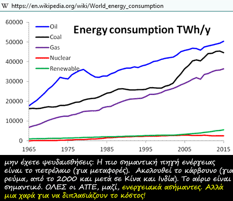 Και ο μεν οικονομολόγος της BP κλαίγεται ότι ο κόσμος μπορεί να ευαισθητοποιείται για το “Κλίμα”, αλλά η κατανάλωση ενέργειας αυξάνεται. Ο οικονομολόγος της BP και οι άλλοι κλαψιάρηδες θα έπρεπε να διαβάσουν τι λέει η ίδια η BP στην ετήσια αναφορά της για την Ενέργεια: