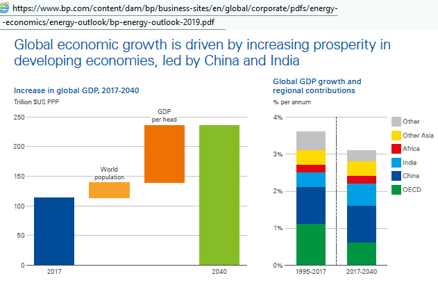 Η ΒΡ λέει ότι και η ExxonMobil, με άλλα λόγια, και παρακαλώ να το εμπεδώσετε, εσείς, οι πολιτικοί, οι παρατρεχάμενοι και οι οικωλόγοι: Η παγκόσμια οικονομική ανάπτυξη οδηγείται (σήμερα) από την αυξανόμενη ευημερία σε “αναπτυσσόμενες” οικονομίες όπως η Κίνα και η Ινδία. Η αυξανόμενη ευημερία είναι συνάρτηση αυξανόμενης κατανάλωσης ενέργειας και συνεπάγεται αυξανόμενη κατανάλωση ενέργειας. Τα περί α) περισσότερης ενέργειας και β) λιγότερου άνθρακα είναι, βασικά, σχήμα οξύμωρο.