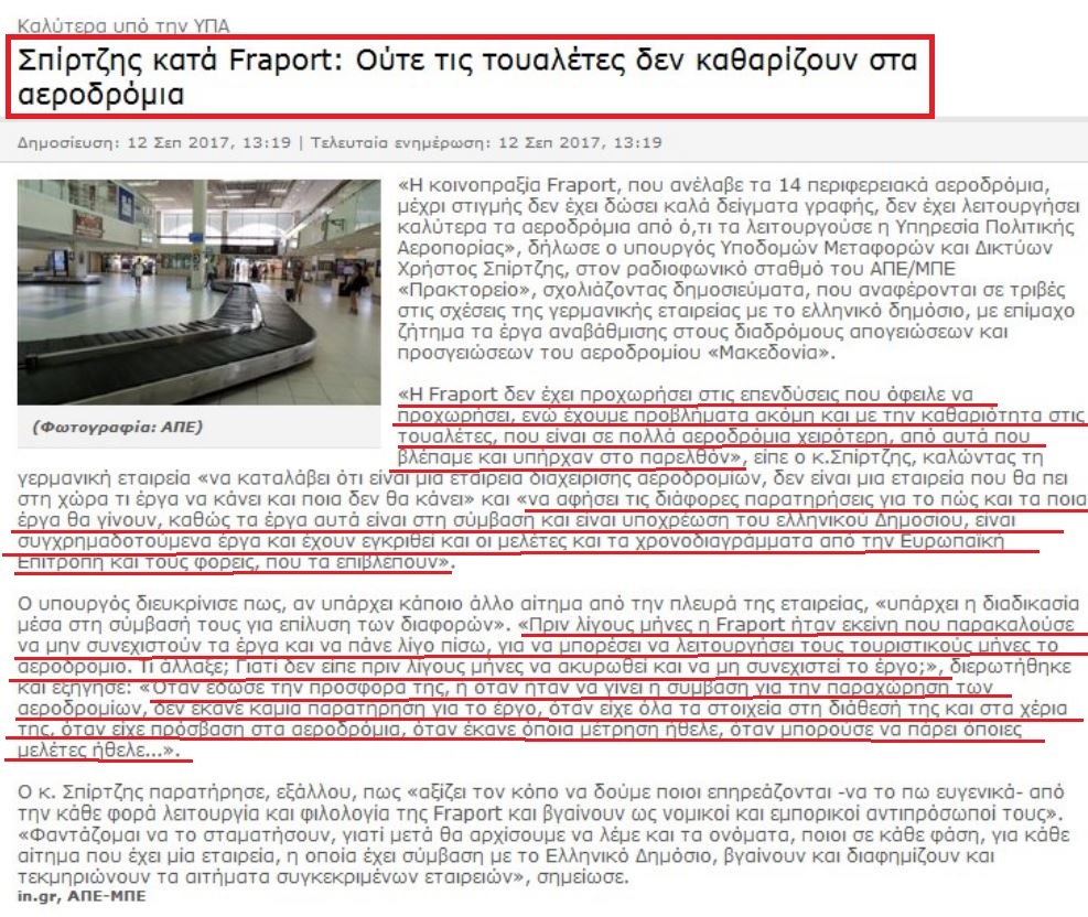 ΜΗΔΕΝ ΕΠΕΝΔΥΣΕΙΣ ΕΩΣ ΤΩΡΑ, ΥΠΟ ΤΟΥ ΜΗΔΕΝΟΣ Η ΚΑΘΑΡΙΟΤΗΤΑ ΣΤΑ ΑΕΡΟΔΡΟΜΙΑ ΚΑΙ ΘΕΛΕΙ ΝΑ ΚΑΘΟΡΙΣΕΙ ΠΟΙΑ ΕΡΓΑ ΘΑ ΓΙΝΟΥΝ ΚΑΙ ΠΟΙΑ ΟΧΙ Μήπως γιατί οι Γερμανοί θέλουν τους πόρους από το πακέτο Γιούνκερ να τους διαθέσουν για τις επενδύσεις που θα έκαναν και δήθεν θα πλήρωναν από τη τσέπη τους ;;;