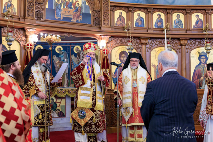 Την Πέμπτη, 25 Δεκεμβρίου, κατά τη διάρκεια της Χριστουγεννιάτικης Θείας Λειτουργίας η οποία τελέστηκε στον Ιερό Ναό του Αγίου Νεκταρίου, στο προάστιο Dianella της Πέρθης, ο Σεβασμιώτατος Αρχιεπίσκοπος Αυστραλίας κ.κ. Μακάριος απένειμε το οφφίκιο του Πρωτοπρεσβυτέρου στον π. Ιωάννη Αθανασίου, με αφορμή την ολοκλήρωση της καλλίκαρπης διακονίας του στην Ενορία. Παράλληλα, ο Σεβασμιώτατος ανέγνωσε Αρχιερατική και Συνοδική Επιστολή, δια της οποίας εκφράστηκαν ο έπαινος και η ευγνωμοσύνη της τοπικής Εκκλησίας προς το πρόσωπο του ευλαβούς κληρικού, για το ήθος, την αφοσιωμένη διακονία και την ανιδιοτελή προσφορά του.