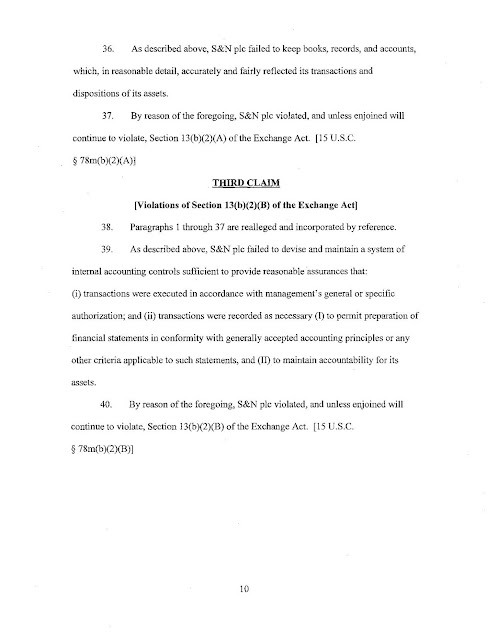 Η καταγγελία της SEC ισχυρίζεται ότι, από το 1997, οι θυγατρικές της Smith & Nephew PLC ανέπτυξαν ένα σχέδιο δημιουργίας ενός ανοικτού αμοιβαίου κεφαλαίου για να πληρώσουν Έλληνες δημόσιοι γιατροί να αγοράσουν προϊόντα από δύο θυγατρικές της Smith & Nephew, Smith & Nephew Inc. και Smith & Nephew GmbH. Σύμφωνα με την καταγγελία, οι θυγατρικές της Smith & Nephew PLC πραγματοποίησαν πληρωμές σε ένα σύνολο τριών οντοτήτων στο Ηνωμένο Βασίλειο που ελέγχονταν από τον διανομέα και οι οποίες χρησίμευαν για την καταβολή δωροδοκίας. Η καταγγελία υποστηρίζει ότι, με έγγραφα, φαίνεται ότι οι θυγατρικές της Smith & Nephew PLC πληρώνουν για υπηρεσίες μάρκετινγκ, αλλά δεν πραγματοποιήθηκαν πράγματι υπηρεσίες. Η καταγγελία ισχυρίζεται επίσης ότι η Smith & Nephew PLC ήξερε για τις πολλές δωροδοκίες και ότι οι υπάλληλοι της Smith & Nephew PLC και οι θυγατρικές της γνώριζαν τις πληρωμές.