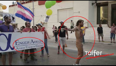 Όπως φαίνεται στις παρακάτω φωτογραφίες, τα πρόσωπα που απαρτίζουν την “Ένωση Αθέων” είναι τα ίδια πρόσωπα που συναντώνται και σε άλλες παρόμοιες “ενώσεις”, και τα οποία έχουν σαν βασικό άξονα την ανωμαλία τους και την ομοφυλοφιλική τους ταυτότητα.