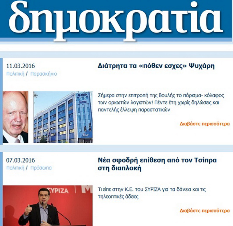 Το Site της Ηuffington Post είναι από τα πιο δημοφιλή ενημερωτικά sites στην Ελλάδα. Η εφημερίδα «Δημοκρατία» από την άλλη απευθύνεται μάλλον σε διαφορετικό κοινό. Χωρίς να είναι ακριβώς «αριστερή» εφημερίδα, στηρίζει σταθερά τον Τσίπρα στον ιερό αγώνα του εναντίον της Διαπλοκής.