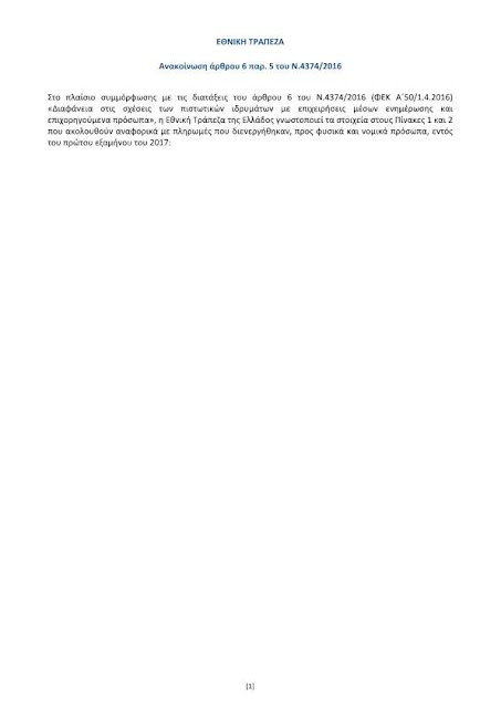 Σύμφωνα με τον νόμο 4374/2016 οι τράπεζες οφείλουν να δημοσιεύουν τα ποσά των χορηγιών τους σε διάφορους φορείς ιδιωτικούς και δημόσιους και με έκπληξη είδαμε σε αυτή την λίστα που δημοσίευσε η Εθνική τράπεζα πως διέθεσε το ποσό των 15.000€ στο ίδρυμα του Κώστα Σημίτη ως χορηγία για να προάγει την πολιτική του σκέψη..