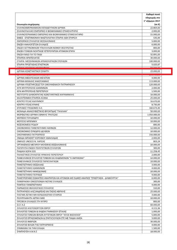 Σύμφωνα με τον νόμο 4374/2016 οι τράπεζες οφείλουν να δημοσιεύουν τα ποσά των χορηγιών τους σε διάφορους φορείς ιδιωτικούς και δημόσιους και με έκπληξη είδαμε σε αυτή την λίστα που δημοσίευσε η Εθνική τράπεζα πως διέθεσε το ποσό των 15.000€ στο ίδρυμα του Κώστα Σημίτη ως χορηγία για να προάγει την πολιτική του σκέψη..