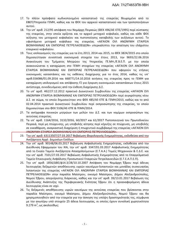 Σύμφωνα λοιπόν με την εν λόγω απόφαση του κυρίου Σταθάκη η εν λόγω εταιρεία προσκόμισε Φορολογική ενημερότητα η οποία εκδόθηκε από την Ανεξάρτητη πλέον αρχή δημοσίων εσόδων και με ημερομηνία 27/3/2017