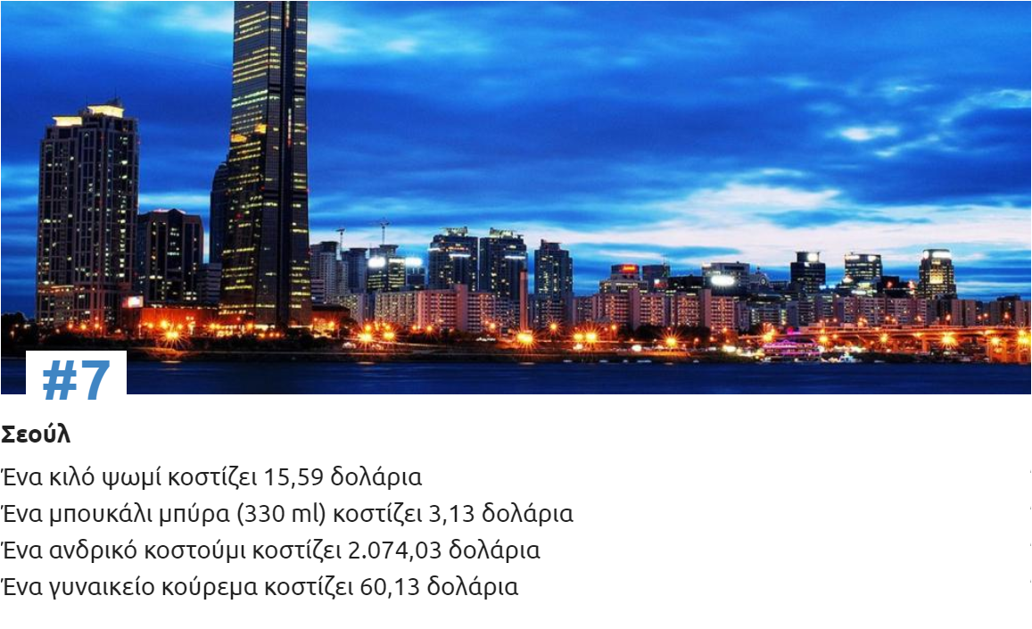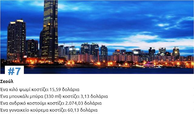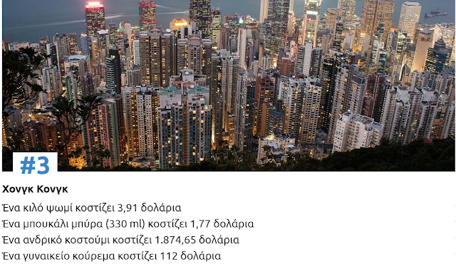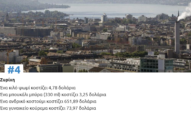 Δείτε παρακάτω πόσο κοστίζουν, ένα κιλό ψωμί, ένα μπουκάλι μπύρα, ένα επαγγελματικό κοστούμι και ένα γυναικείο κούρεμα σε κάθε μια από τις 10 ακριβότερες πόλεις του κόσμου για φέτος: