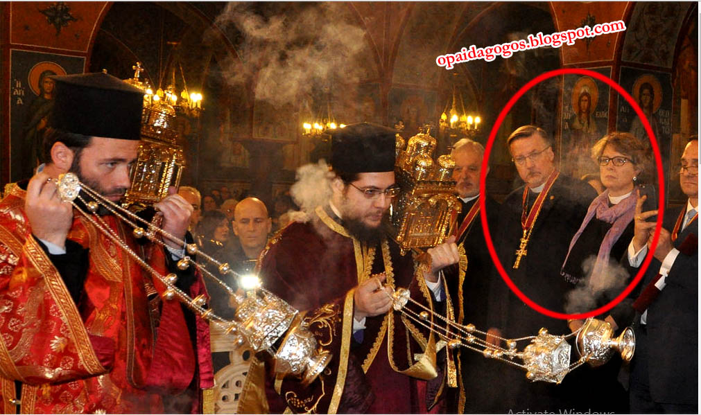 Δράμα, Δεκέμβριος 2016. “ιέρεια” προτεστάντισα και “ιερέας” προτεστάντης, ΜΕΣΑ στον ορθόδοξο ναό. Δείτε δεκάδες φωτογραφίες τους εδώ και εδώ. Μέχρι και στην λιτανεία της εικόνας της Αγ.Βαρβάρας συμμετείχαν οι αιρετικοί. ΑΘΕΟΦΟΒΟΙ. Κι εσύ πιστέ, “φερμουάρ στο στόμα” (όπως συστήνει ο (περιοδεύουν ανά τον κόσμο) Αγιορείτης π.Νίκων).